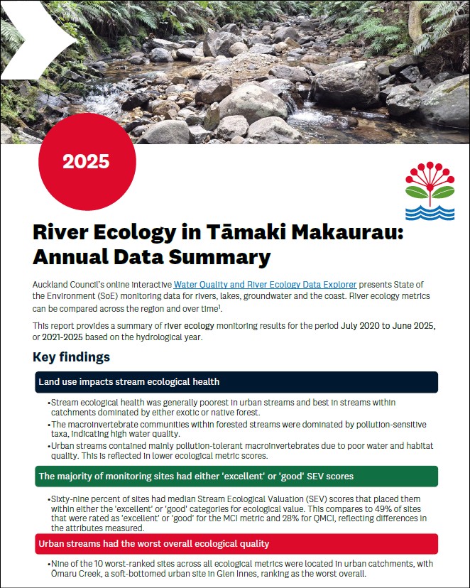 River ecology in Tāmaki Makaurau: Annual data summary 2025