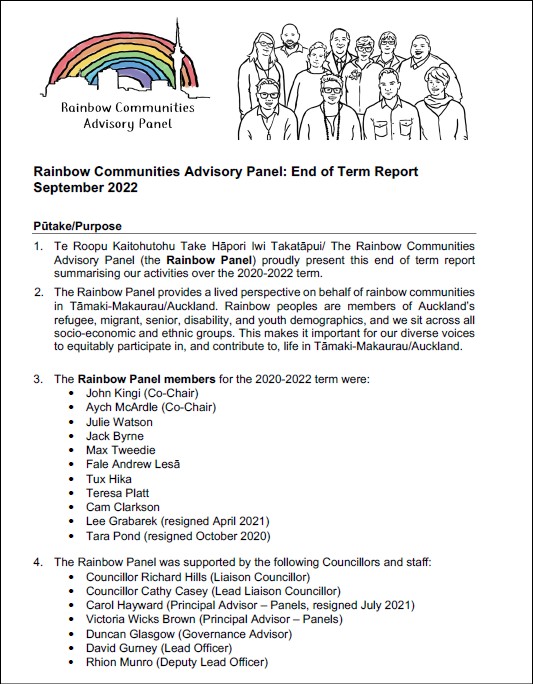 Auckland Council Rainbow Communities Advisory Panel. End of term report 2019-2022