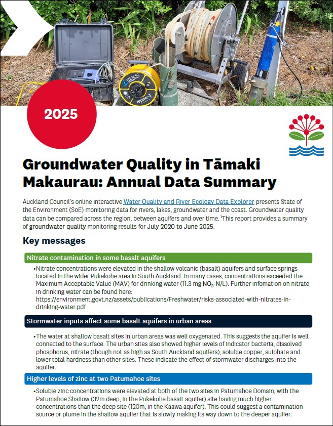 Groundwater quality in Tāmaki Makaurau: Annual data summary 2025
