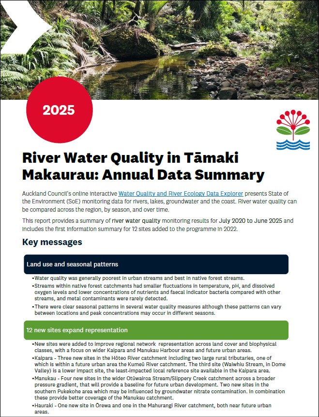 River water quality in Tāmaki Makaurau: Annual data summary 2025