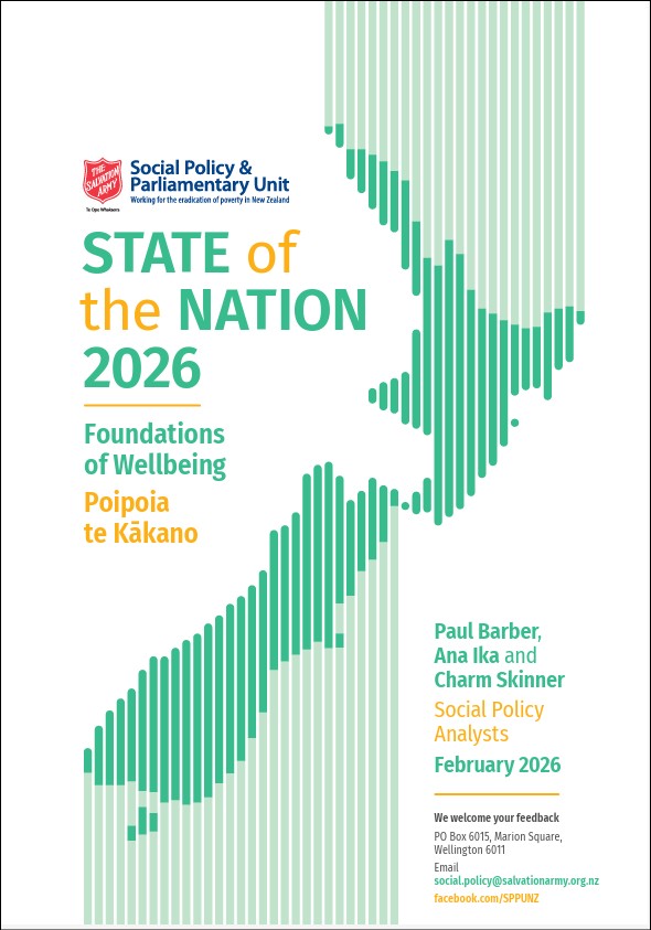 The Salvation Army, Te Ope Whakaora, the Army that brings life, is working every day with communities, whānau and individuals right around the country. In this report, the wellbeing of our nation is assessed by looking at outcomes that impact people and communities. We look at measures across the following areas: Children and Youth, Work and Incomes, Housing, Crime and Punishment, Social Hazards and Māori Wellbeing through Te Ora o Te Whānau.