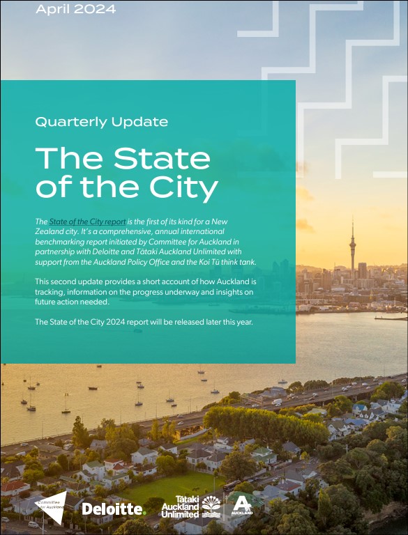 Environment ,EconomyThe State of the City report is the first of its kind for a New Zealand city. It’s a comprehensive, annual international benchmarking report initiated by Committee for Auckland in partnership with Deloitte and Tātaki Auckland Unlimited with support from the Auckland Policy Office and the Koi Tū think tank.